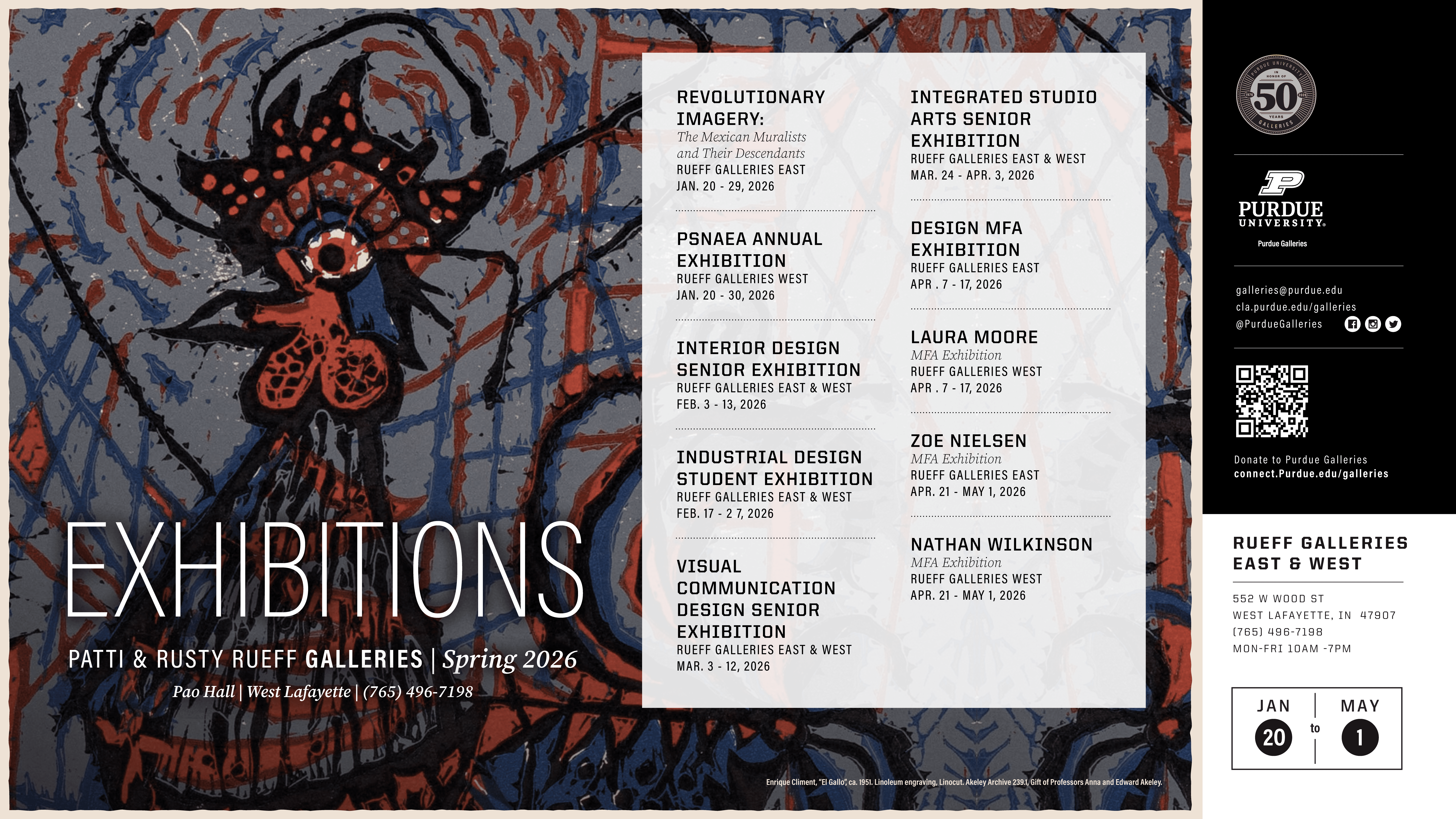 A collection of print and digital media created to supplement marketing for Purdue Galleries.