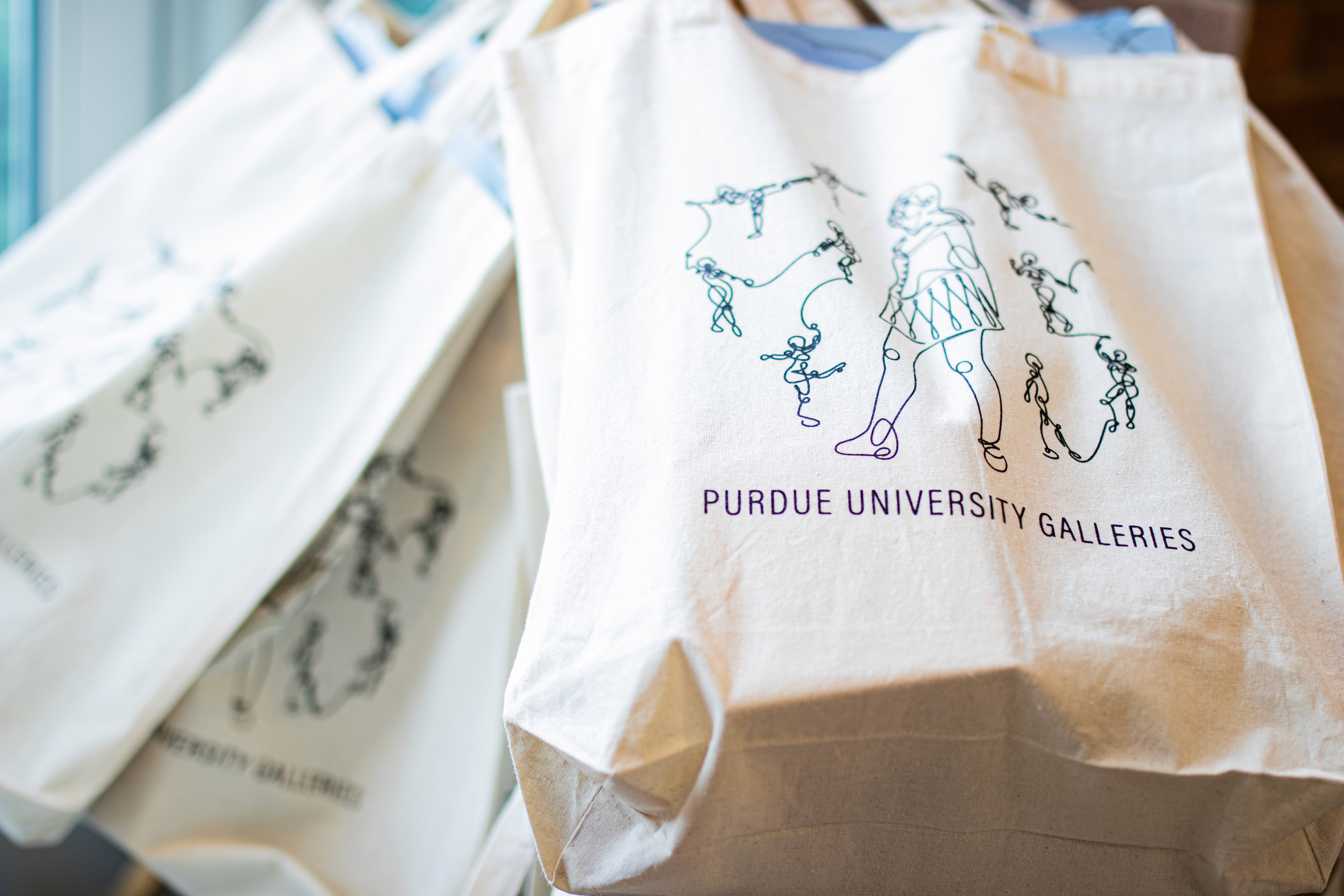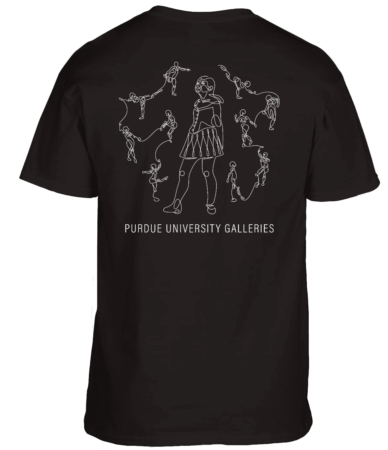 In the summer of 2025, Purdue Galleries launched their Patron Society. As an incentive for joining, members received a tote bag. I was tasked with designing the bag, and instructed to create a design representing the Degas Collection of statues Purdue acquired in 2024. Later, the design was printed on the backs of t-shirts that workers in Purdue Galleries wear during their shifts.