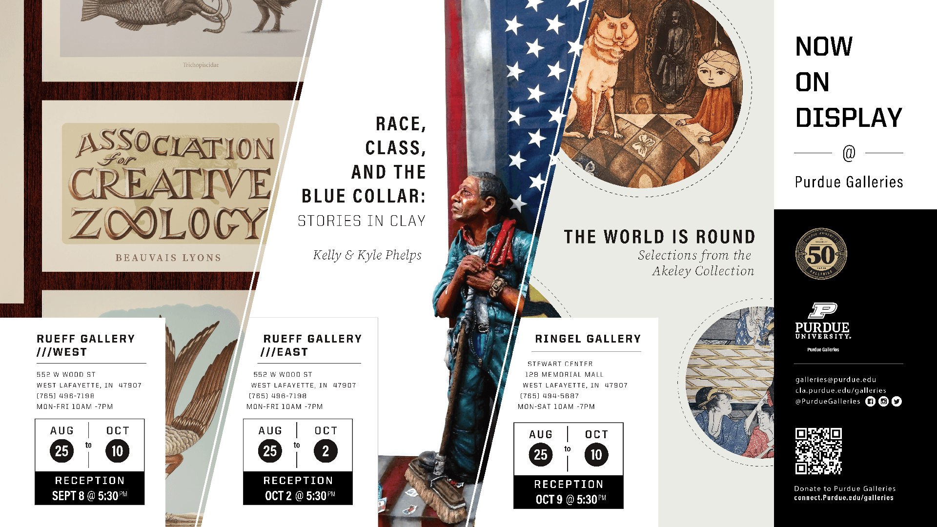 Each exhibition at Purdue Galleries gets advertised around campus on TVs. Here is a collection of TV ads I designed to promote these exhibits.