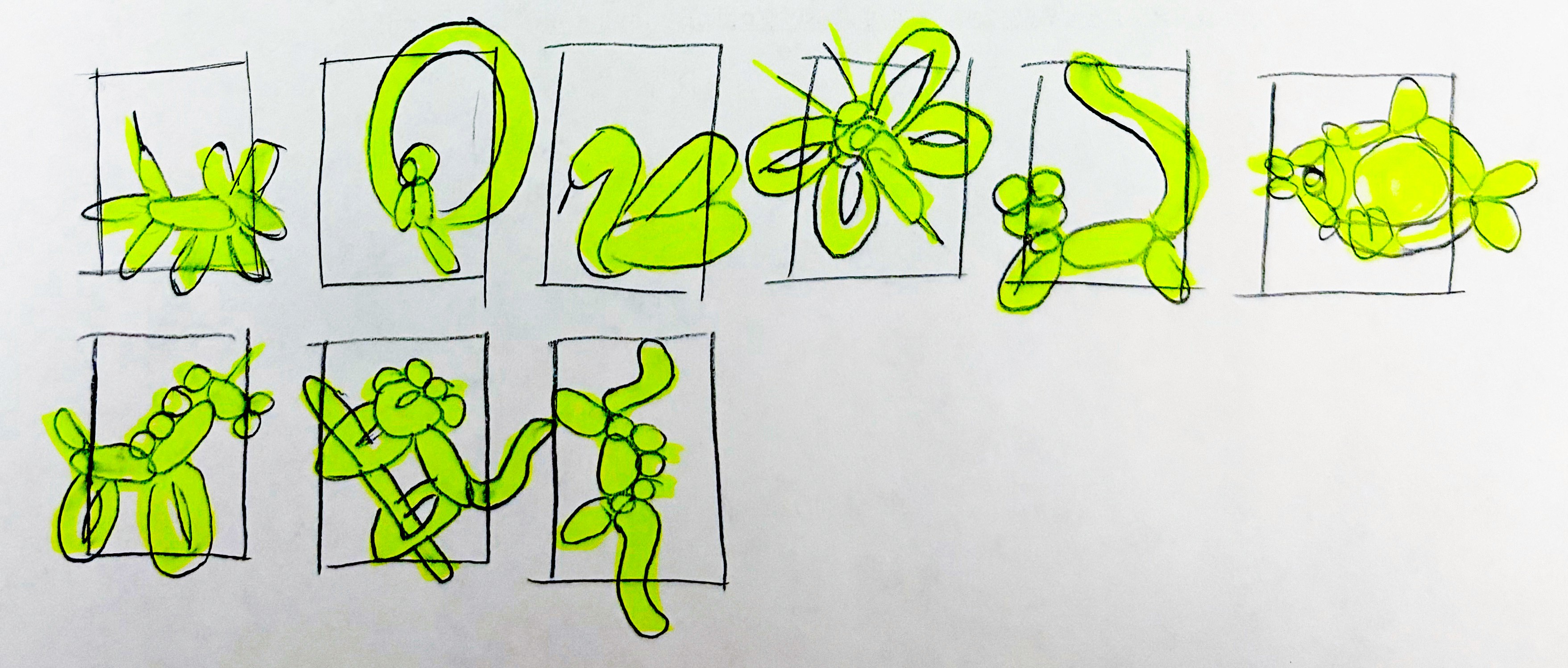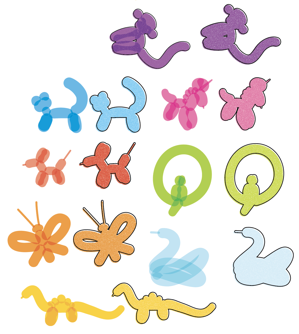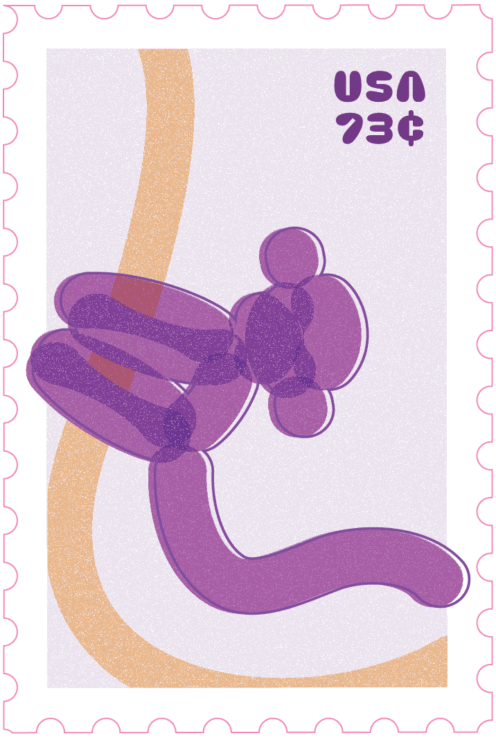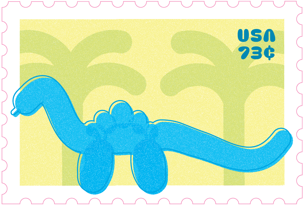 The task for this assignment was to design a set of stamps based on a particular theme. I chose to focus my stamps around the theme of balloon animals, and ideated different possible balloon animals to include on the stamps. My process began with illustrating each animal in illustrator, and adding backgrounds and textures to each illustration. The process was completed by designing a stamp sheet and giving the collection a title: Party Animals.