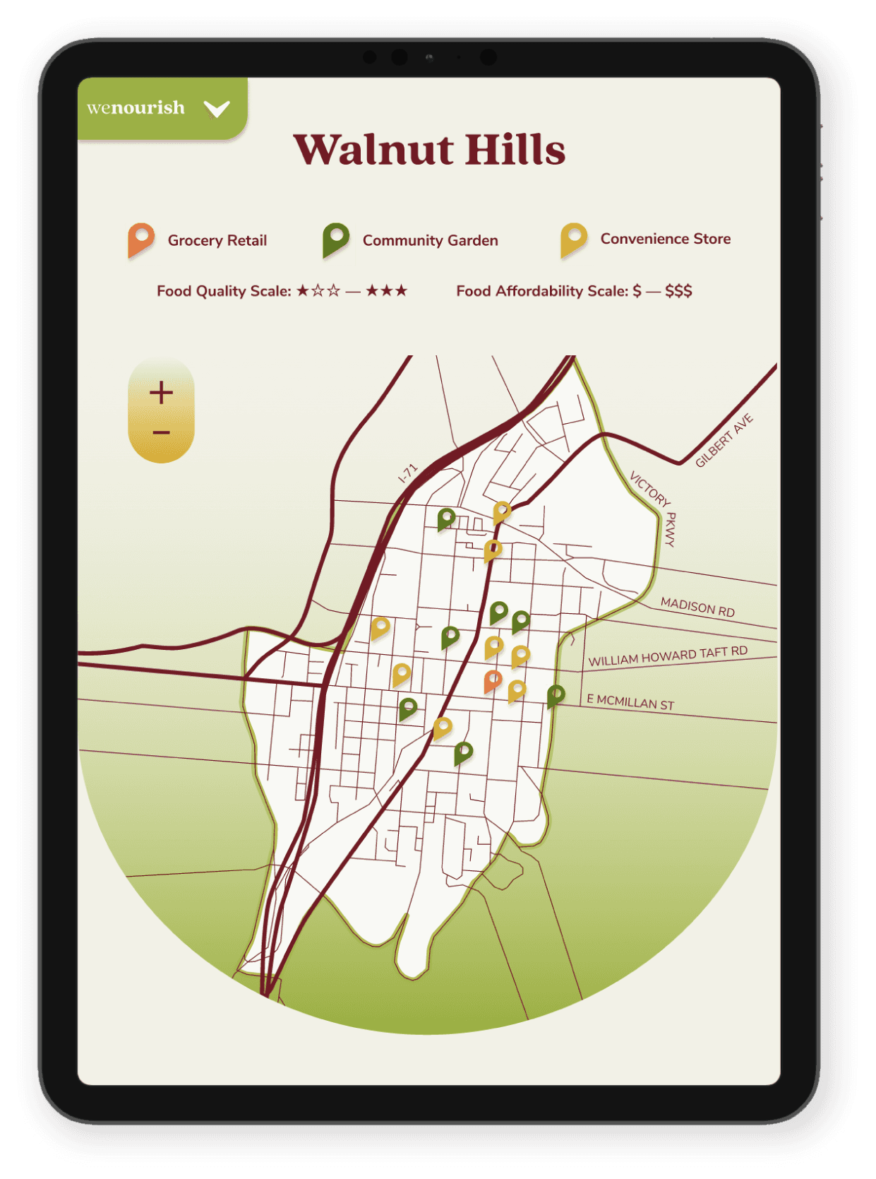 Responsive website designed to address food insecurity in the neighborhood Walnut Hills.
