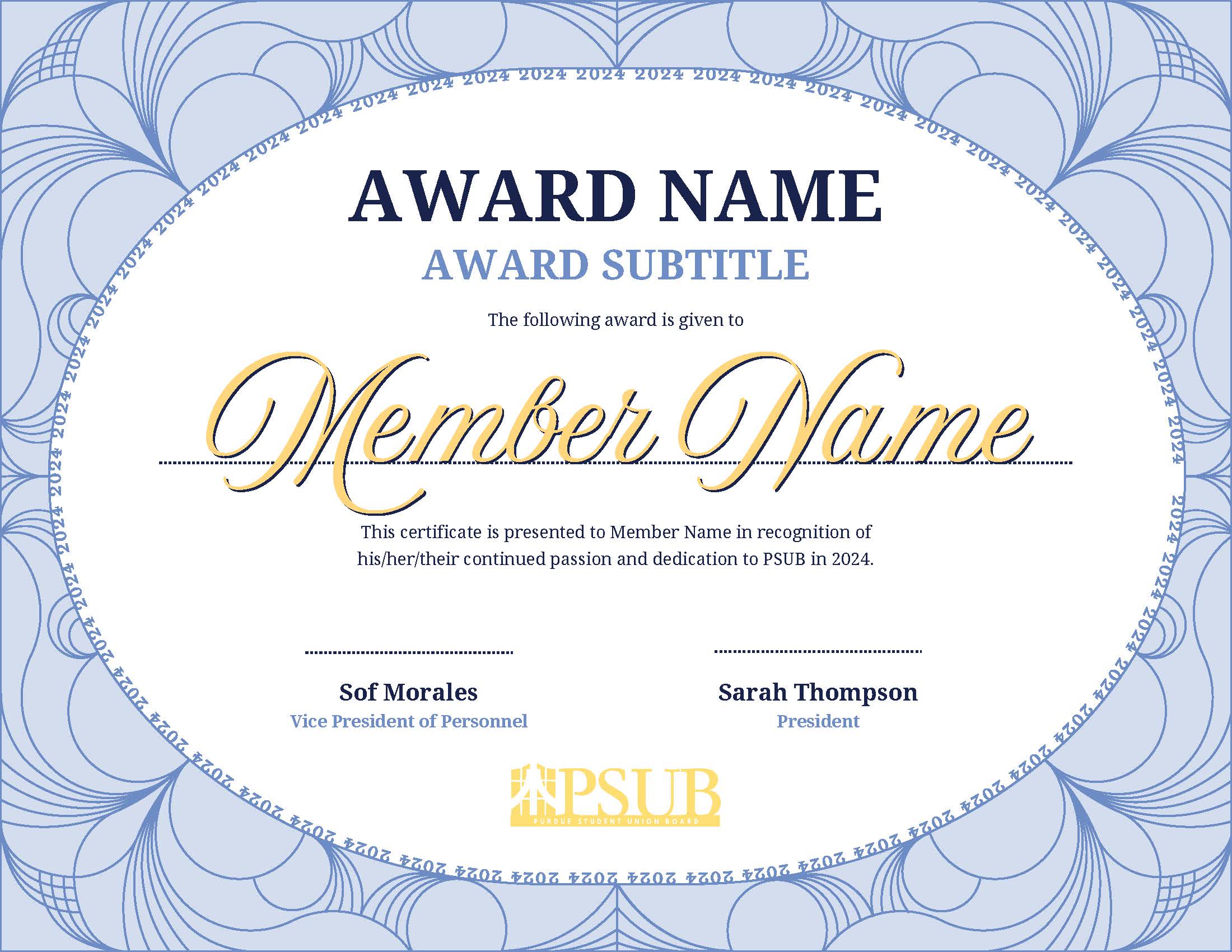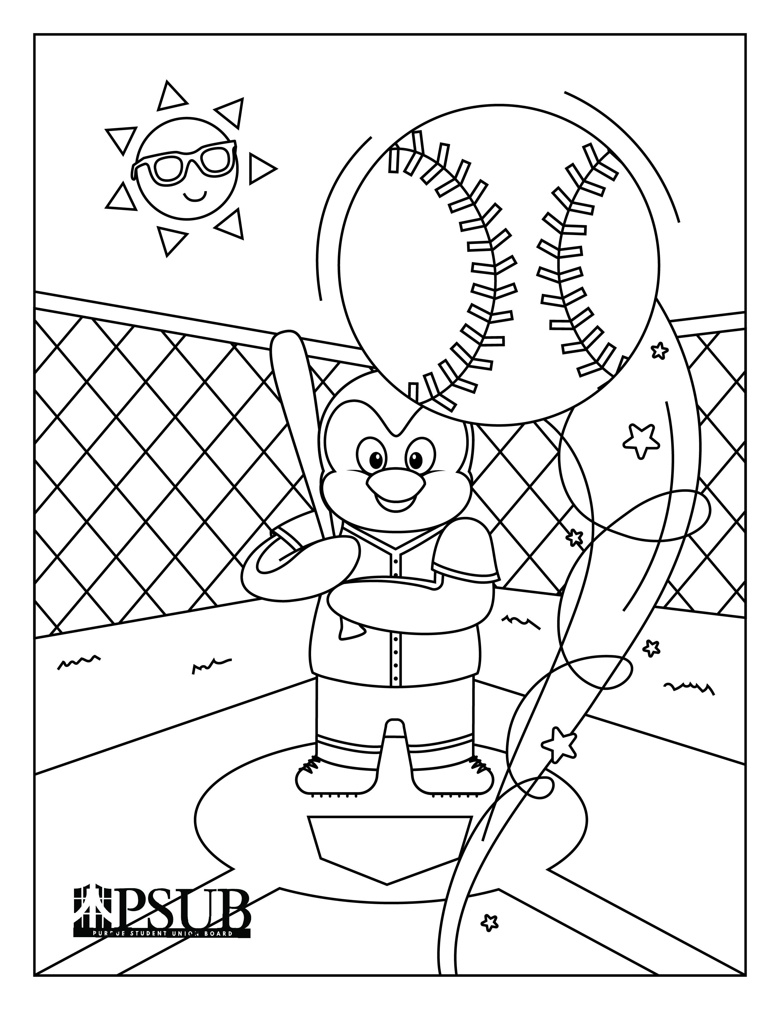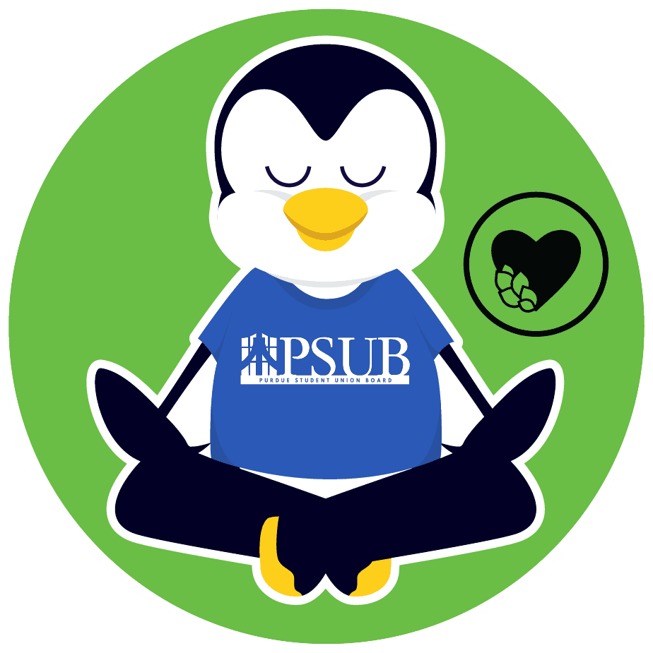 Beyond designing posters, I have completed numerous other types of projects for the Purdue Student Union Board. For some events, a large crescent-shaped sign is produced and hung up in the entryway of the Purdue Memorial Union, as seen in the first image. Other assorted projects I have completed include invitations and certificates for the annual Recognition Dinner event, themed coloring pages for various events, and redesigning the organization's mascot, Percy the Penguin.