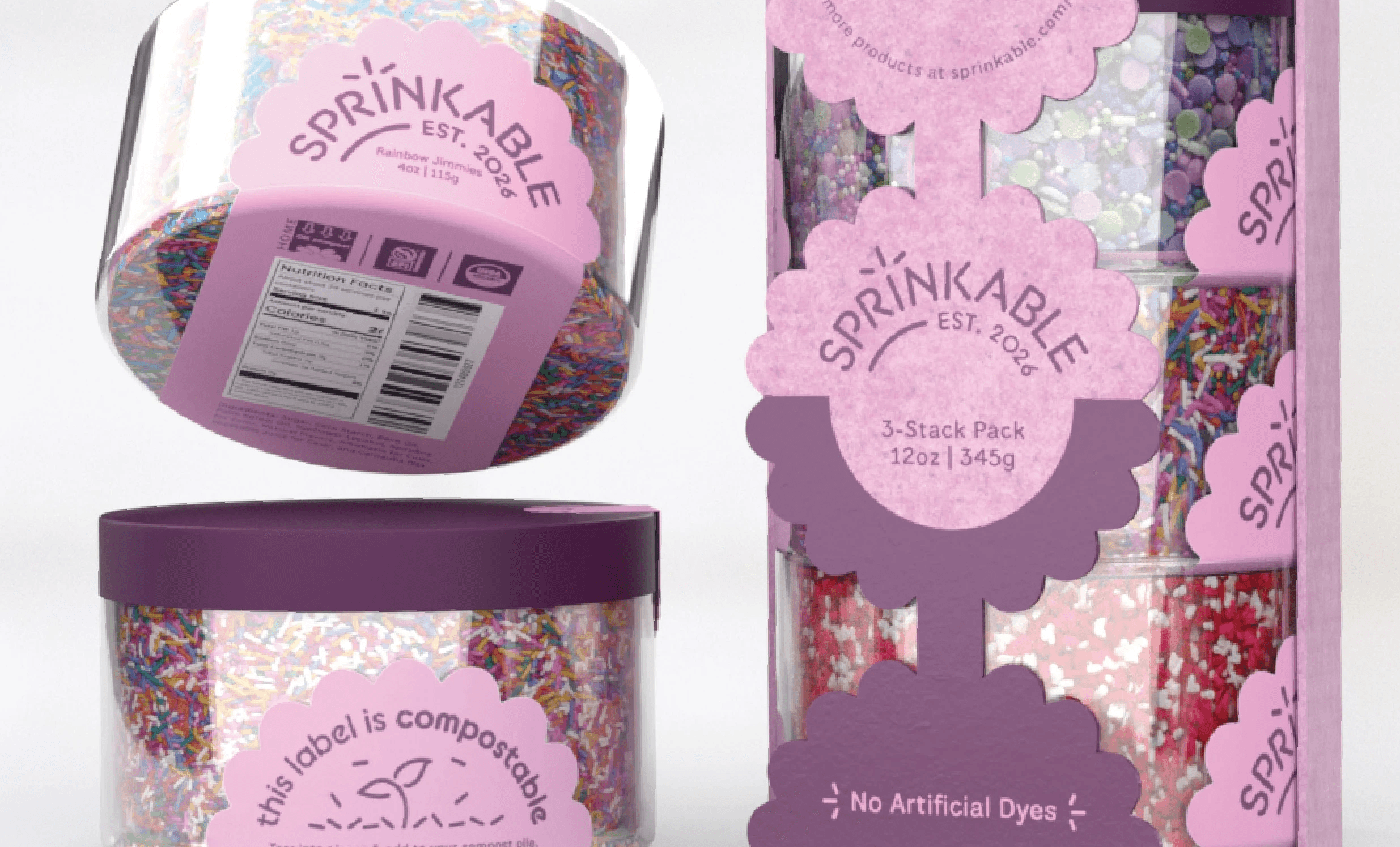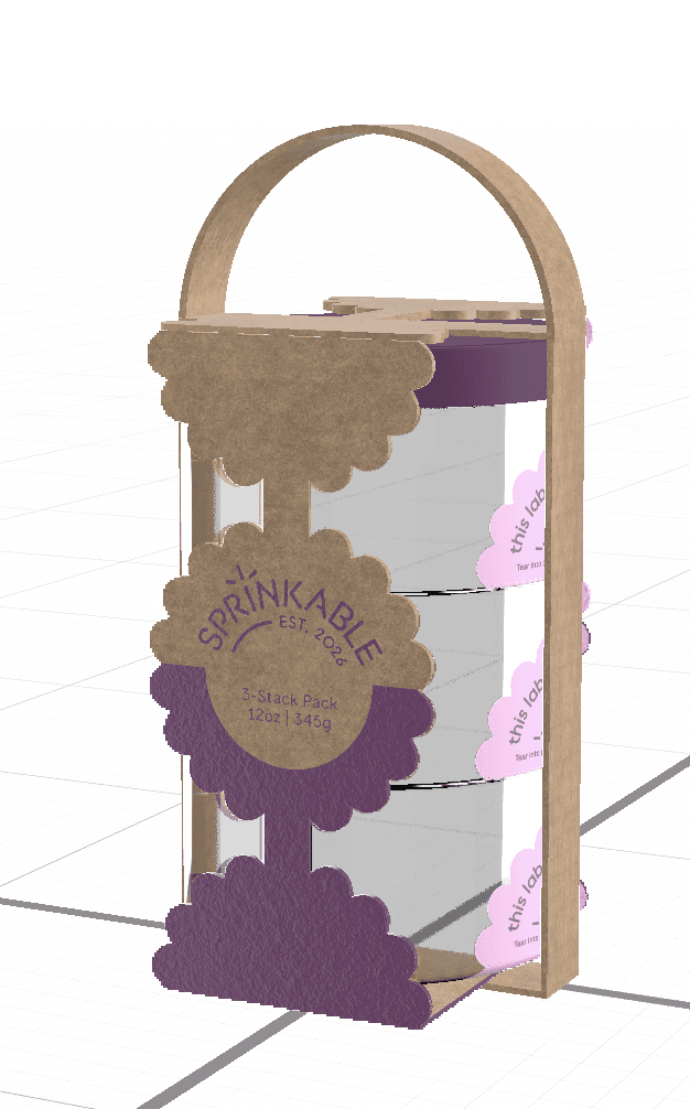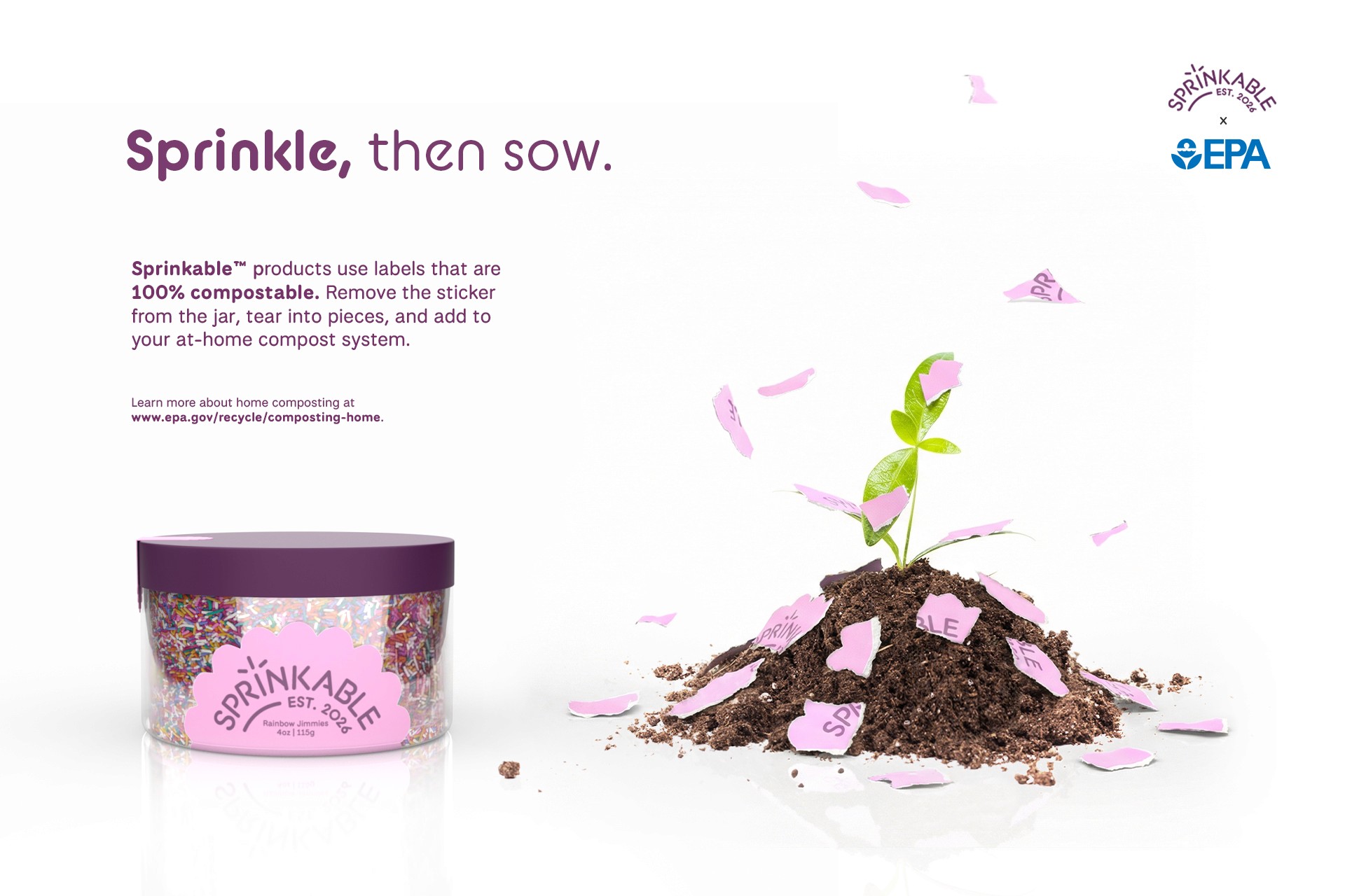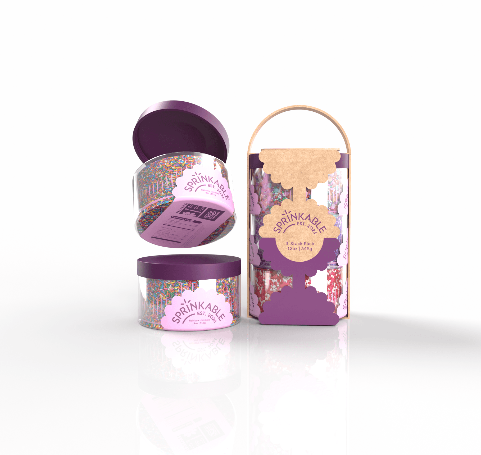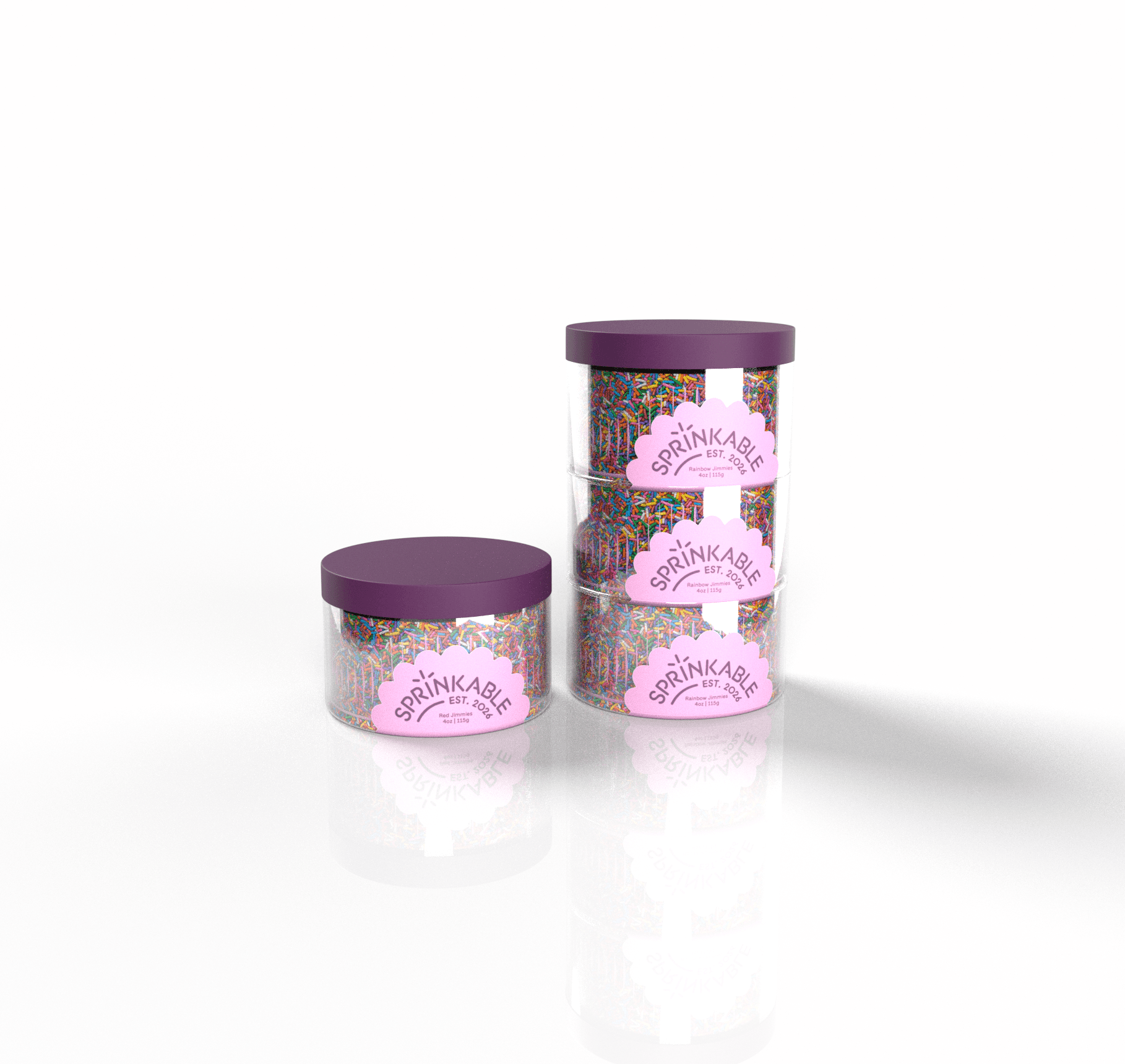 Assigned to create a brand identity and sustainable packaging design for a dry good, I chose to develop the brand Sprinkable. Since this project was focused on packaging, I started the process sketching and researching possibilities for a new way to package sprinkles that is user-friendly and sustainable. I learned from speaking with some hobbyist bakers different considerations for the design, like giving each container a wide opening so it is easy to access the product. In keeping it sustainable, I discovered the possibility of printing labels that are home compostable. I leaned into this with the product as the user would have the experience of "sprinkling" the labels into their compost after use, which I thought was a unique angle. Taking this into account, I created a digital ad showcasing this moment. I completed the project by finalizing dielines for the packaging and creating digital mockups using Adobe Dimension.